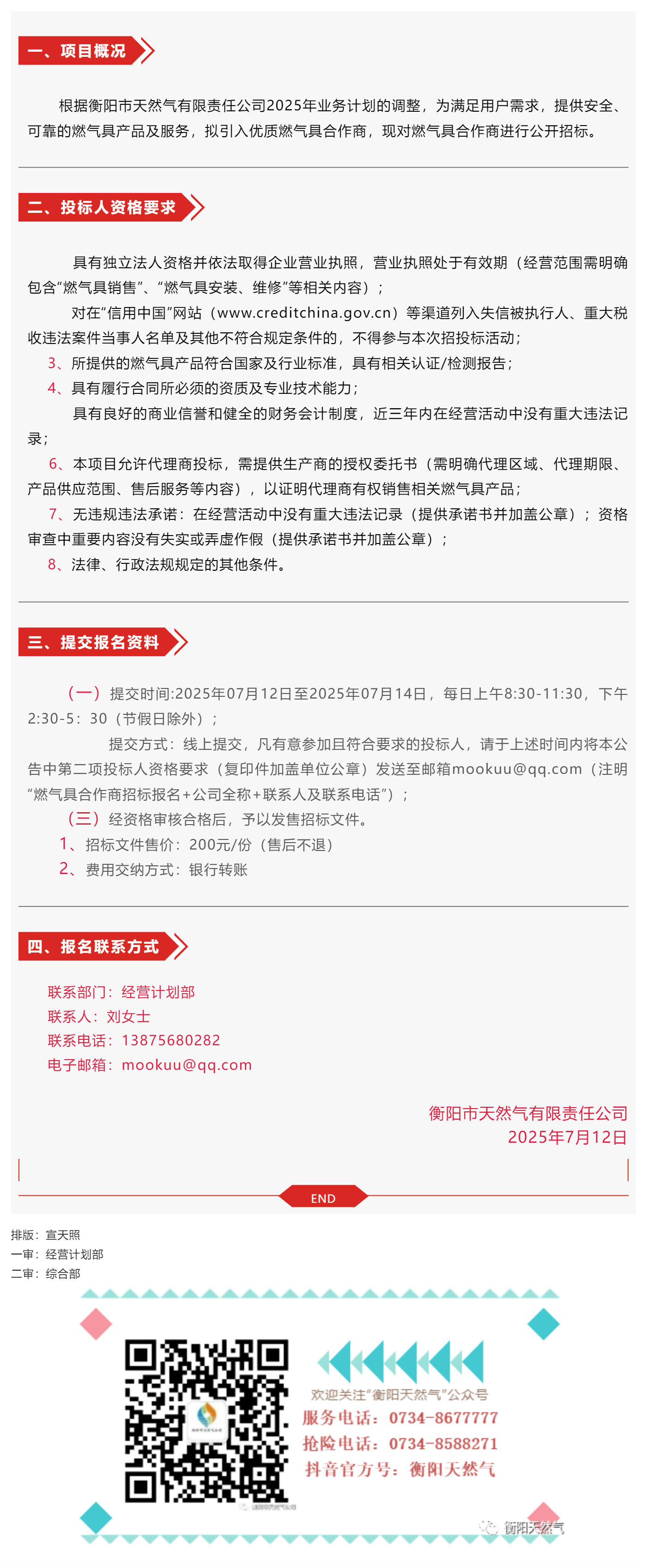 招標公告丨衡陽(yáng)市天然氣有限責任公司2025年燃氣具合作商入圍招標公告