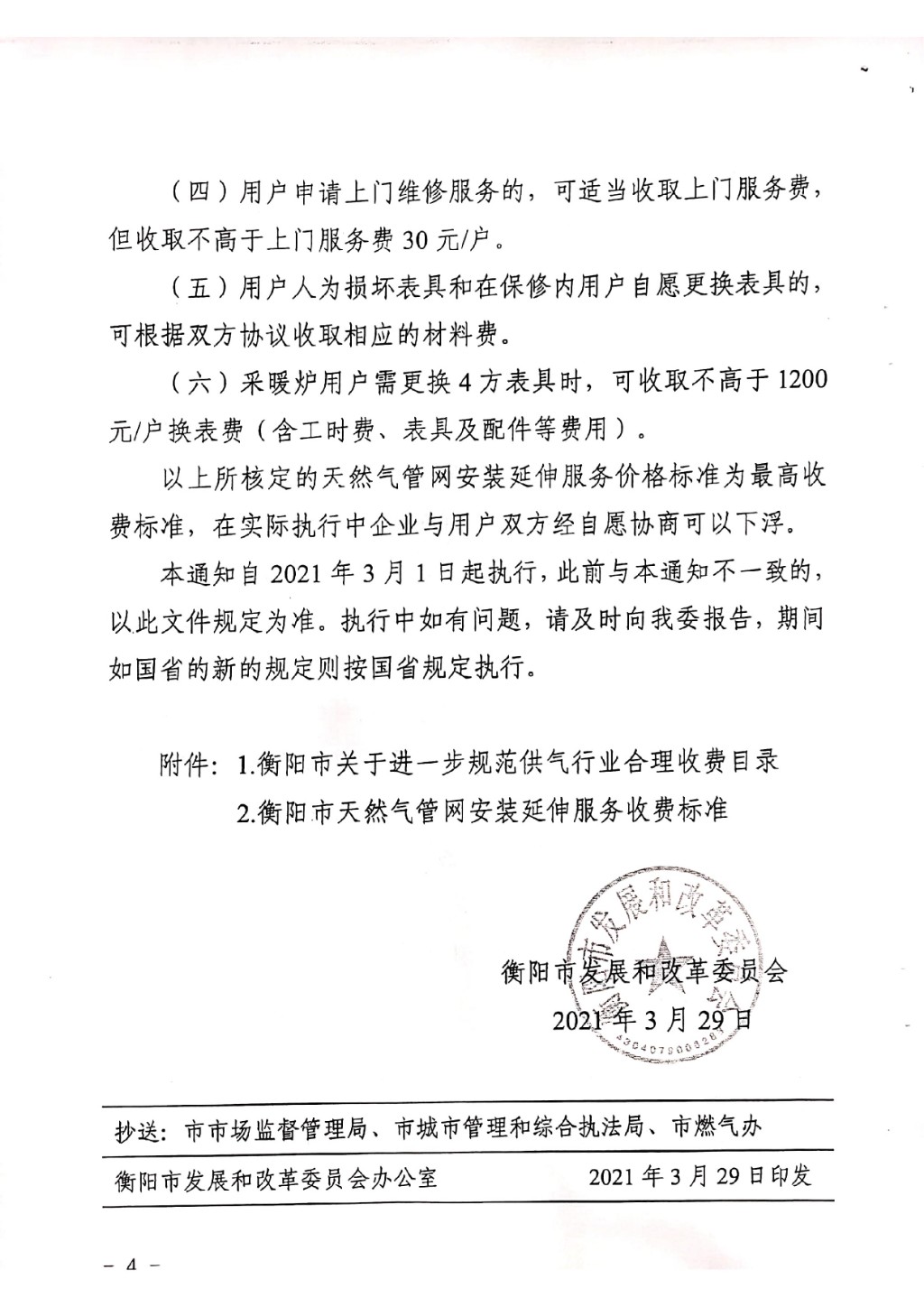 衡發(fā)改價(jià)商【2021】1號關(guān)于轉發(fā)《衡陽(yáng)市發(fā)展和改革委員會(huì )關(guān)于進(jìn)一步規范供氣行業(yè)合理收費的通知》的通知